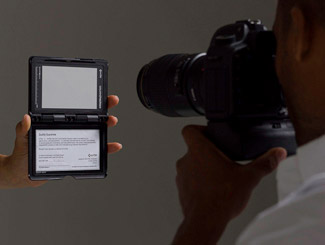 The Passport case adjusts to multiple positions to self-stand, allowing you the flexibility to place the targets exactly where you need them. Whether you need a single shot of the White Balance target, a 90-degree shot of the Classic or Enhancement target, or a parallel shot of them together, the Passport case can be perfectly positioned.